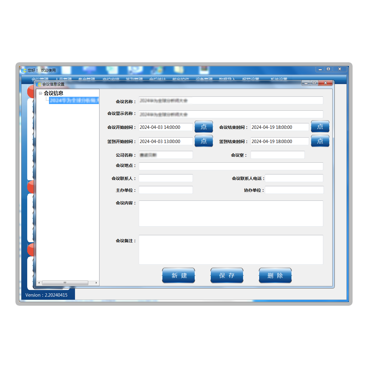 数据维护方便,包括会议名称等资料维护、人员维护、签到维护等;